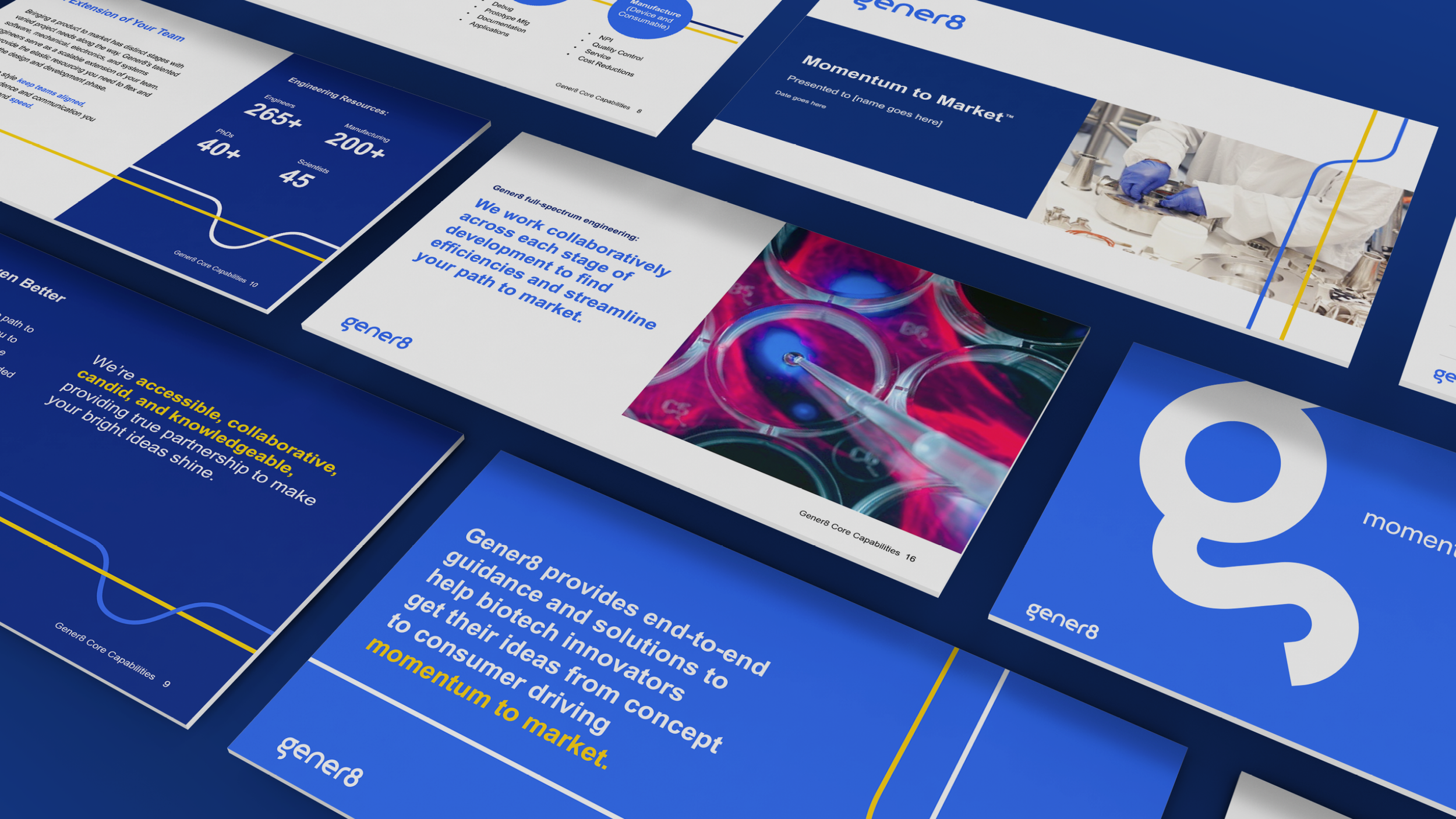 Gener8 helps biotech innovators bring their ideas to fruition through engineering solutions. Recent acquisitions enhanced their offering to cover the full spectrum from ideation to manufacturing. Gener8 needed a way to tell their new story to the market and set themselves apart from well-established large players in the industry.